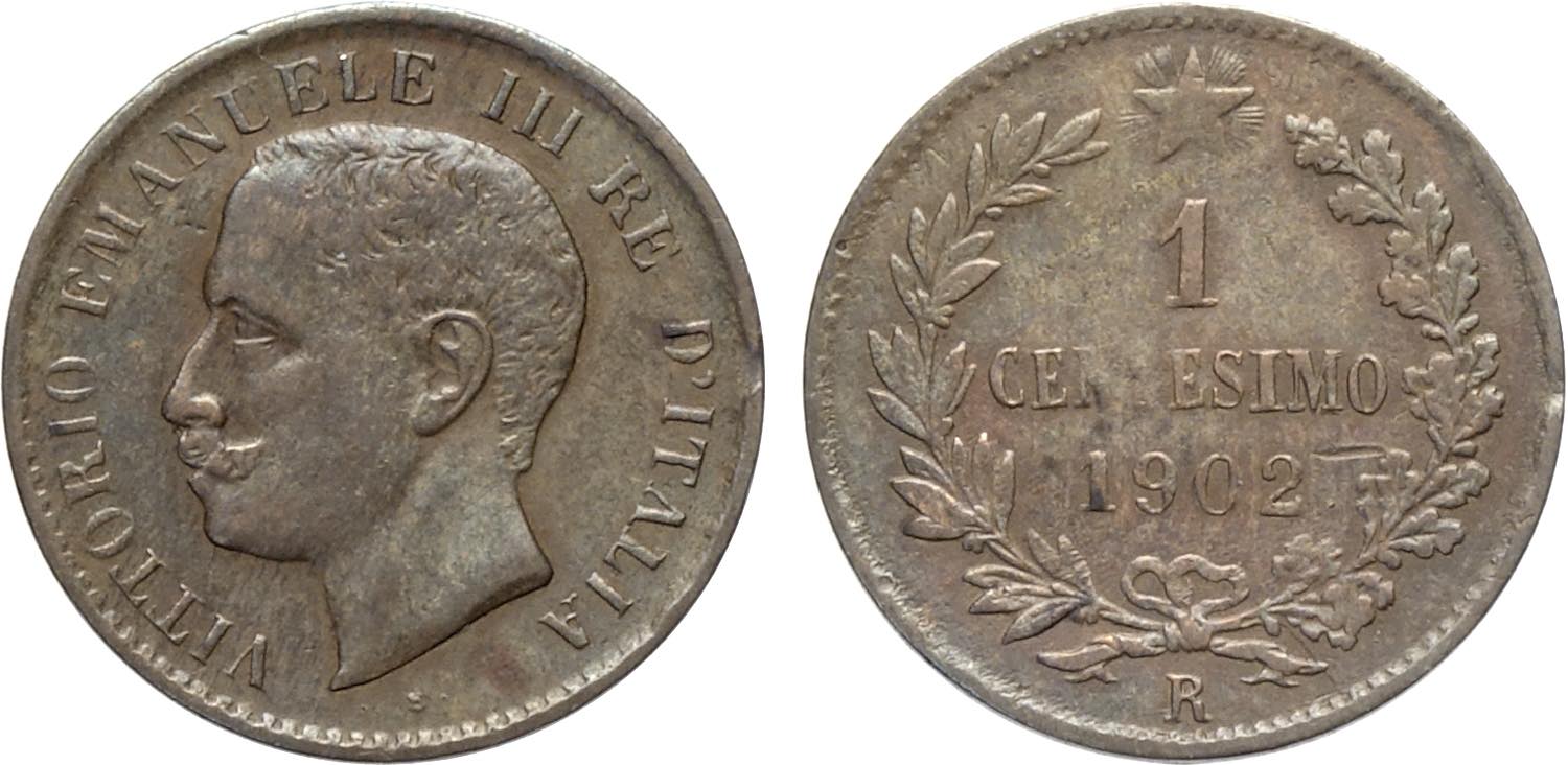 Regno d'Italia, Vittorio Emanuele III (1900-1943), Centesimo 1902, RRR Cu 15 mm, 0,94 g, BB