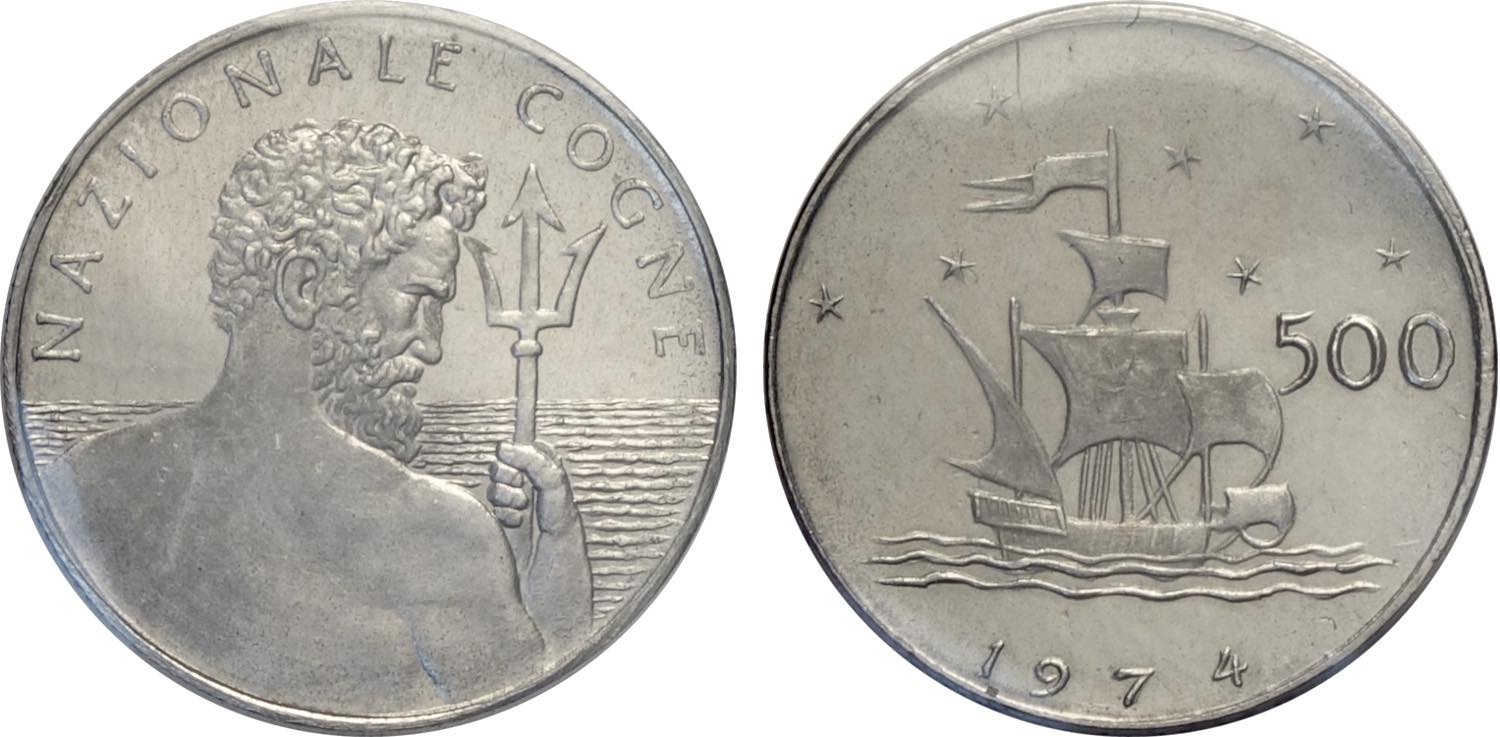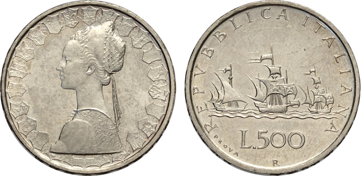 Repubblica Italiana, Monetazione in Lire (1946-2001), Progetto da 500 Lire 1974, contorno rigato, Zecca Nazionale Cogne, Varesi-54 Ac 18 ...