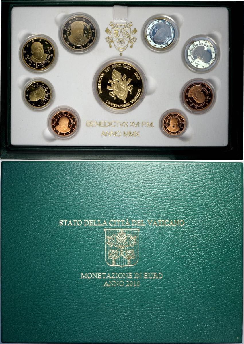 Città del Vaticano, Benedetto XVI (2005-2013), Proof Set 2010 (8+1) con medaglia in oro, RRR Tiratura: 300, In box originale con ...