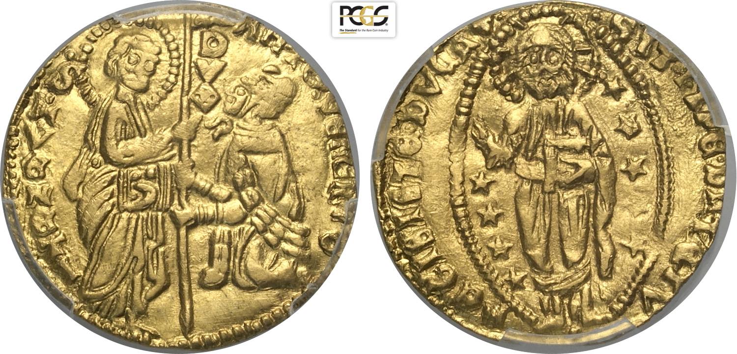 Venezia, Antonio Venier (1382-1400), Ducato, Fr-1229 Au 21 mm, 3,51 g, in Slab PCGS UNC-cleaned (pulitura impercettibile)