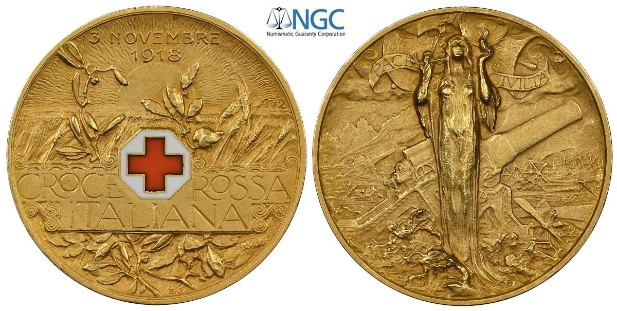 Regno d'Italia, Vittorio Emanuele III (1900-1943), 50 Lire 1918 Gettone in oro per la Croce Rossa Italiana, n°172, RRR Au 30 mm, 14,57 g , ...