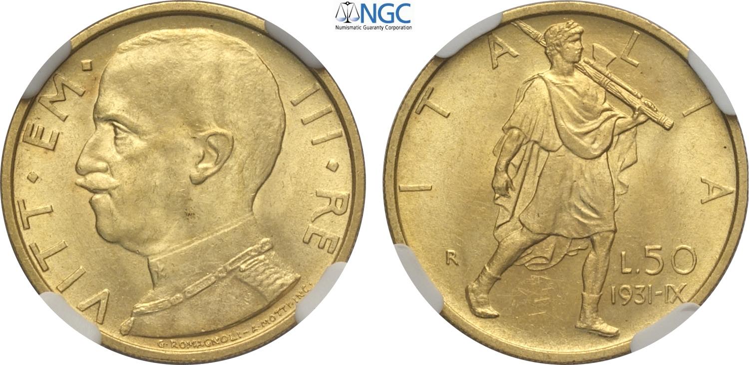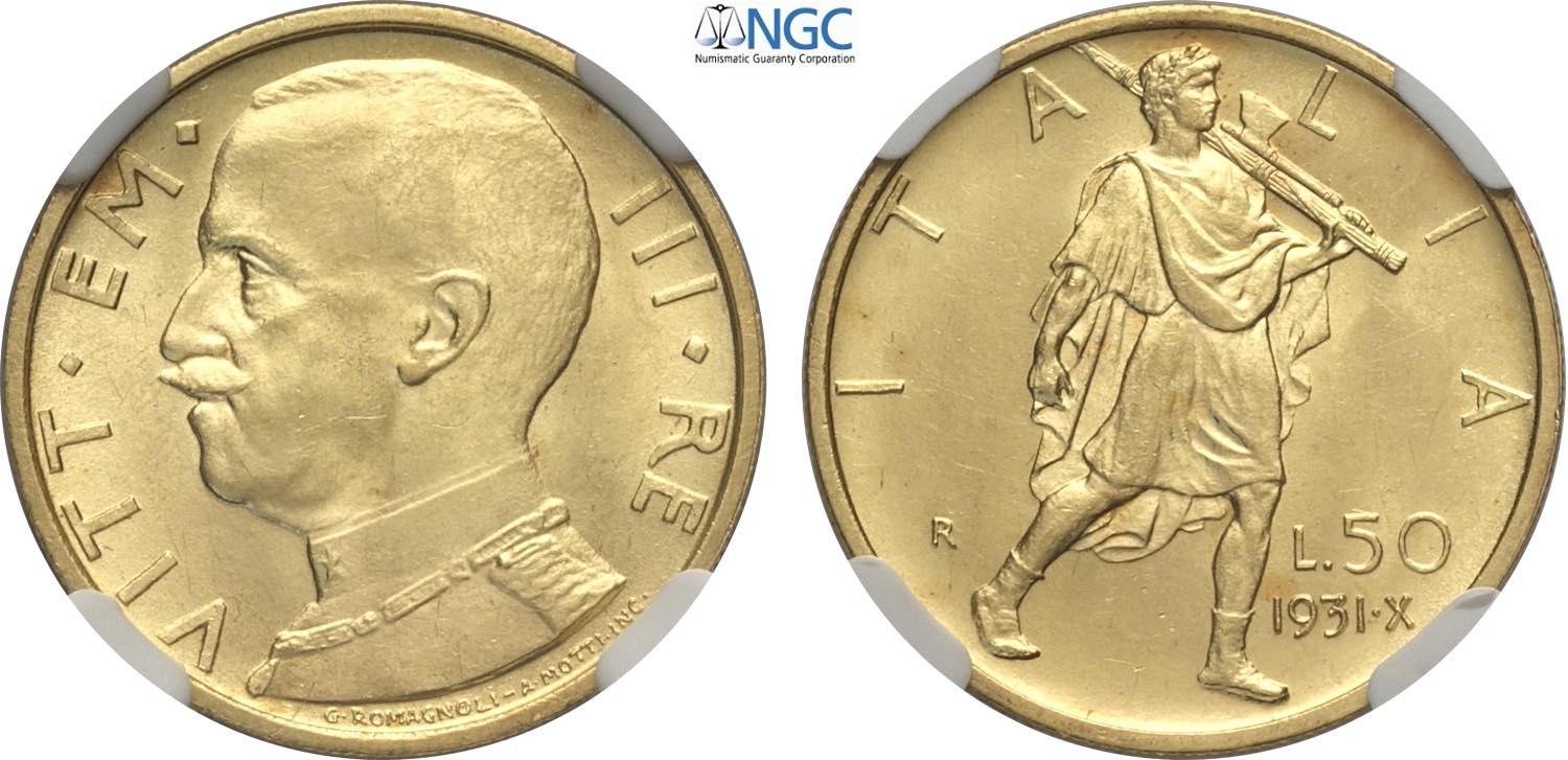 Regno d'Italia, Vittorio Emanuele III (1900-1943), 50 Lire 1931-X, Au 20,5 mm, 4,4 g, in Slab NGC MS63