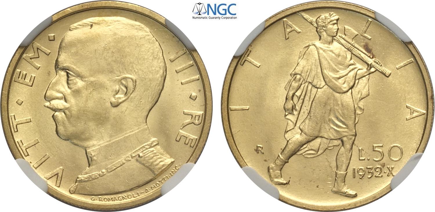 Regno d'Italia, Vittorio Emanuele III (1900-1943), 50 Lire 1932, Au 20,5 mm, 4,4 g, in Slab NGC MS63+