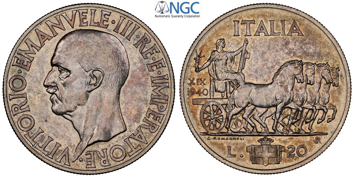 Regno d'Italia, Vittorio Emanuele III (1900-1943), 20 Lire 1940-XIX, coniati 20 esemplari, RRRR Ag 35,5 mm, 20 g, a nostro parere la moneta ...