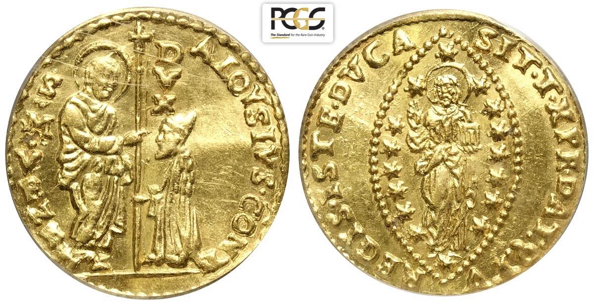 Venezia, Alvise Contarini (1676-1684), Zecchino, Au mm 22 minima ondulazione ma esemplare di ottima qualità, in slab PCGS MS62