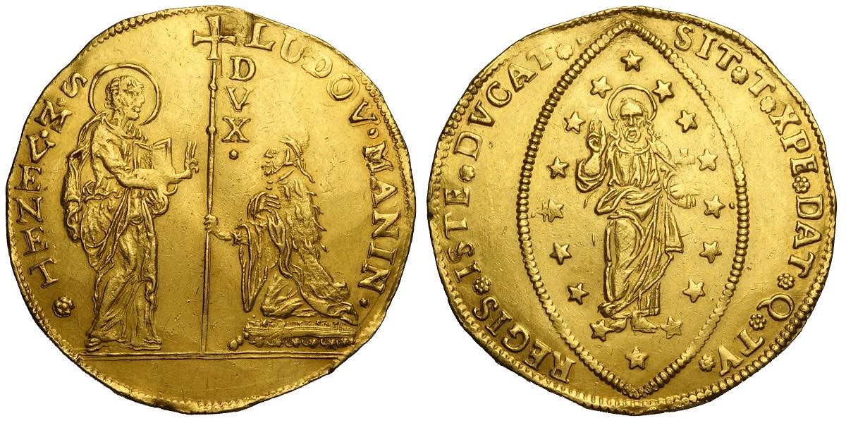 Venezia, Ludovico Manin (1789-1797), 10 Zecchini, Au mm 49 g 34,67, foro abilmente otturato ma nel complesso piacevole esemplare di bel ...