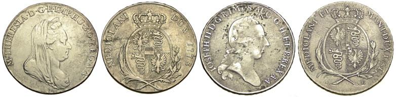 Milano – Lotto di 2 monete - Milano – Lotto di 2 monete:Scudo 1778 Non Comune da montatura e porosità ;Scudo 1781 Rara porosità MB