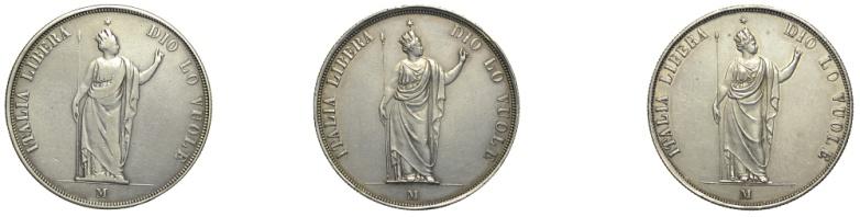 Milano – 1848 – Lotto di 3 monete - Milano – Governo Provvisorio 1848 – Lotto di 3 monete:5 Lire 1848 – AG mm 37,5 Comune, Rara e ...