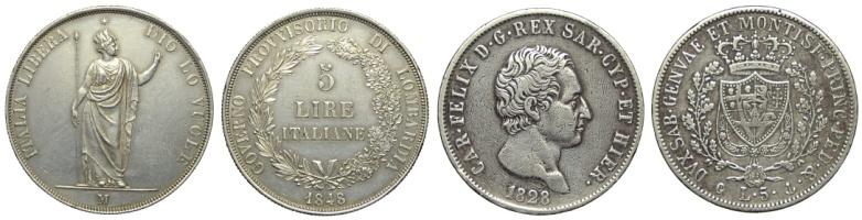 Milano/Savoia – Lotto di 2 Monete - Milano/Savoia – Lotto di 2 Monete:Milano 5 Lire 1848 q.SPL leggermente lavata ;Savoia 5 Lire 1828 ...
