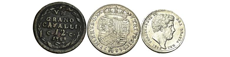Napoli – Lotto di 3 Monete - Napoli – Lotto di 3 Monete:Tarì 1689 q.SPL ; Grano 1789 q.BB ; Tarì 1859 NC SPL lavata