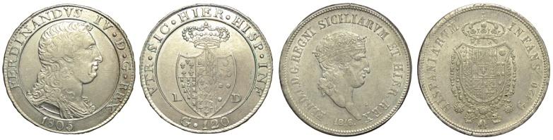 Napoli – Lotto di 2 Monete - Napoli – Lotto di 2 Monete:Piastra 1805 MIR 423 BB+ colpetto ripreso ; Piastra 1818 MIR 462 BB-SPL micro ...
