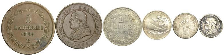 Roma (1846-1870) Lotto di 4 Monete - Roma – Pio IX (1846-1870) – Lotto di 4 Monete:Scudo 1847 colpetti BB-SPL ; 4 Soldi 1866 SPL+ ; 4 ...