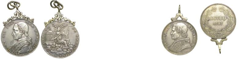 Papali – Lotto di 2 Scudi con montatura d’epoca - Papali – Lotto di 2 Scudi con montatura d’epoca:1825 B BB+ Leone XII ; 1847 R BB ...