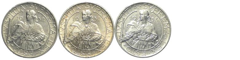 San Marino (1864-1938) Lotto di 3 monete - San Marino – Vecchia Monetazione (1864-1938)Lotto di 3 monete da lire 10 in AG:1932 colpetti ...