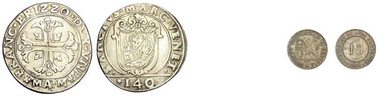 Venezia – Lotto di 2 Monete - Venezia – Lotto di 2 Monete:Scudo della Croce 1631-1646 Francesco Erizzo leggermente tosata AG g. 28,75 ...