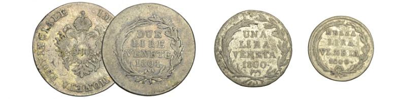 Venezia – (1797-1805) – Lotto di 3 Monete - Venezia – Francesco II (1797-1805) – Lotto di 3 Monete:2 Lire 1801 ; Lira 1800 ; Mezza ...