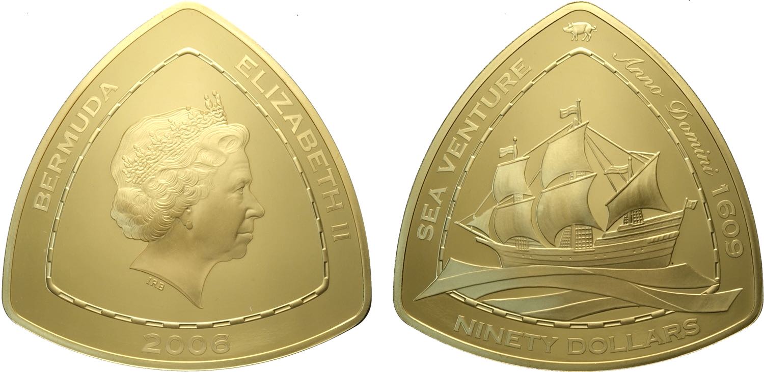 Bermuda, Elizabeth II (1952-2022), 90 Dollars 2006, London Mint, Mintage: 90, Au (.999) 65 mm 155,52 g (5 Oz), with original box and ...