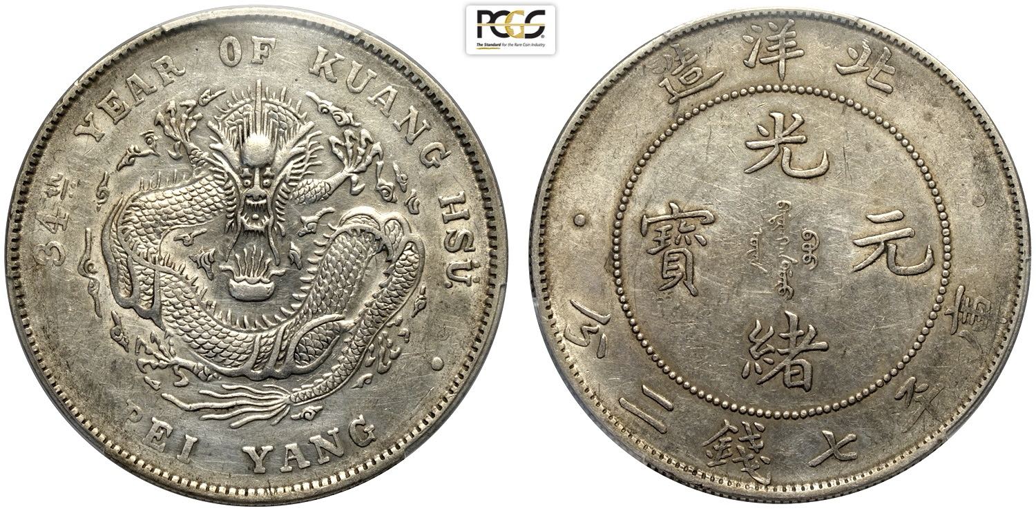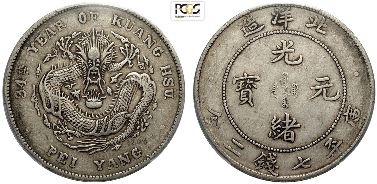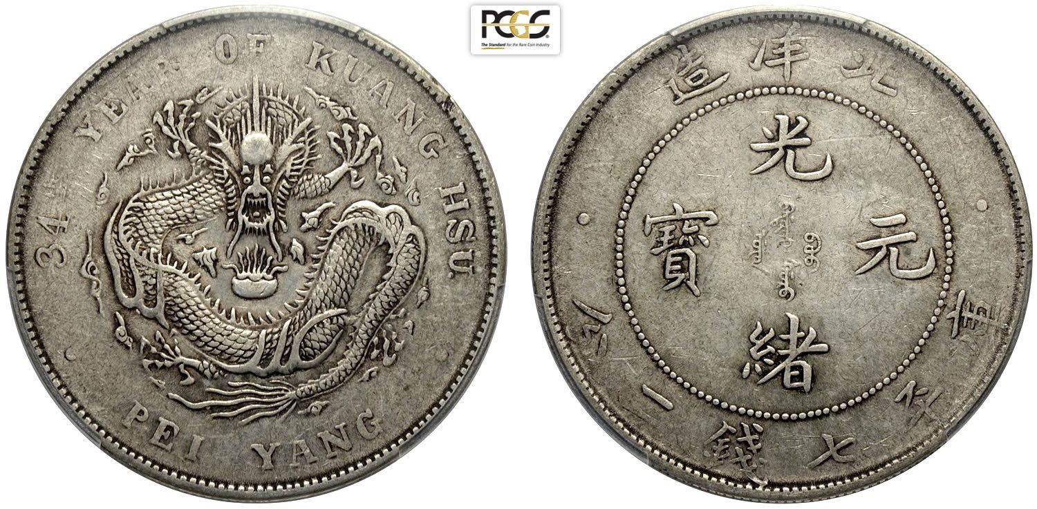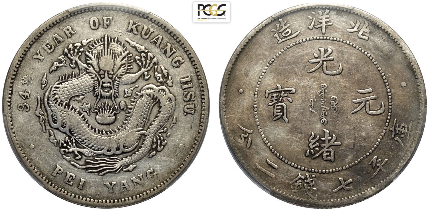 China Chihli, Kuang-hsu (1875-1908), Dollar year 34 (1908), L&M-465 Ag 39 mm, 26,70 g, in Slab PCGS AU-Cleaned