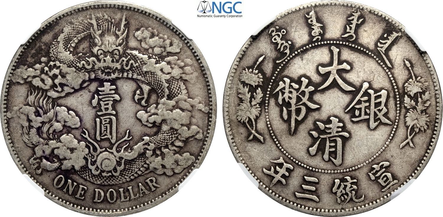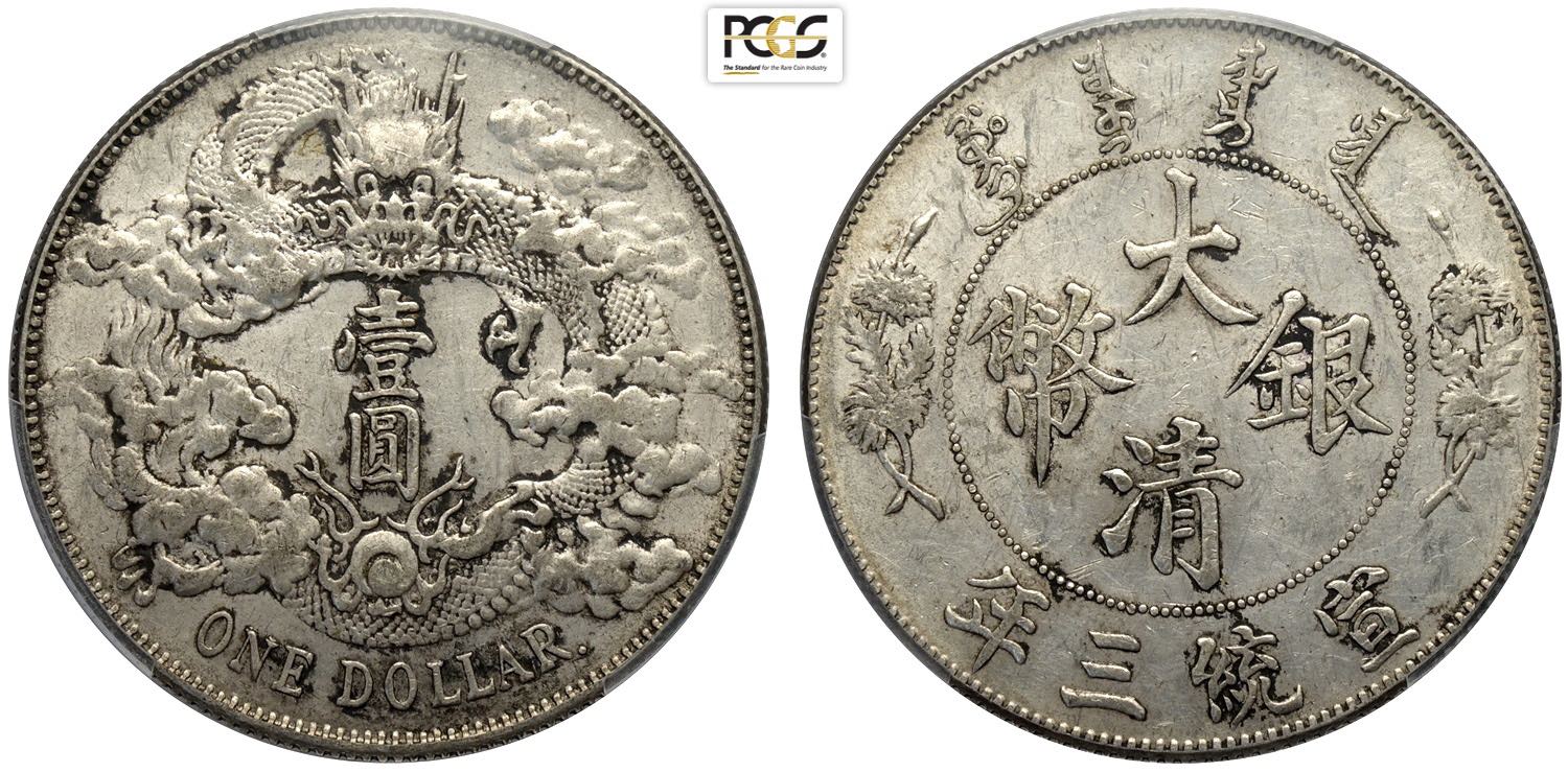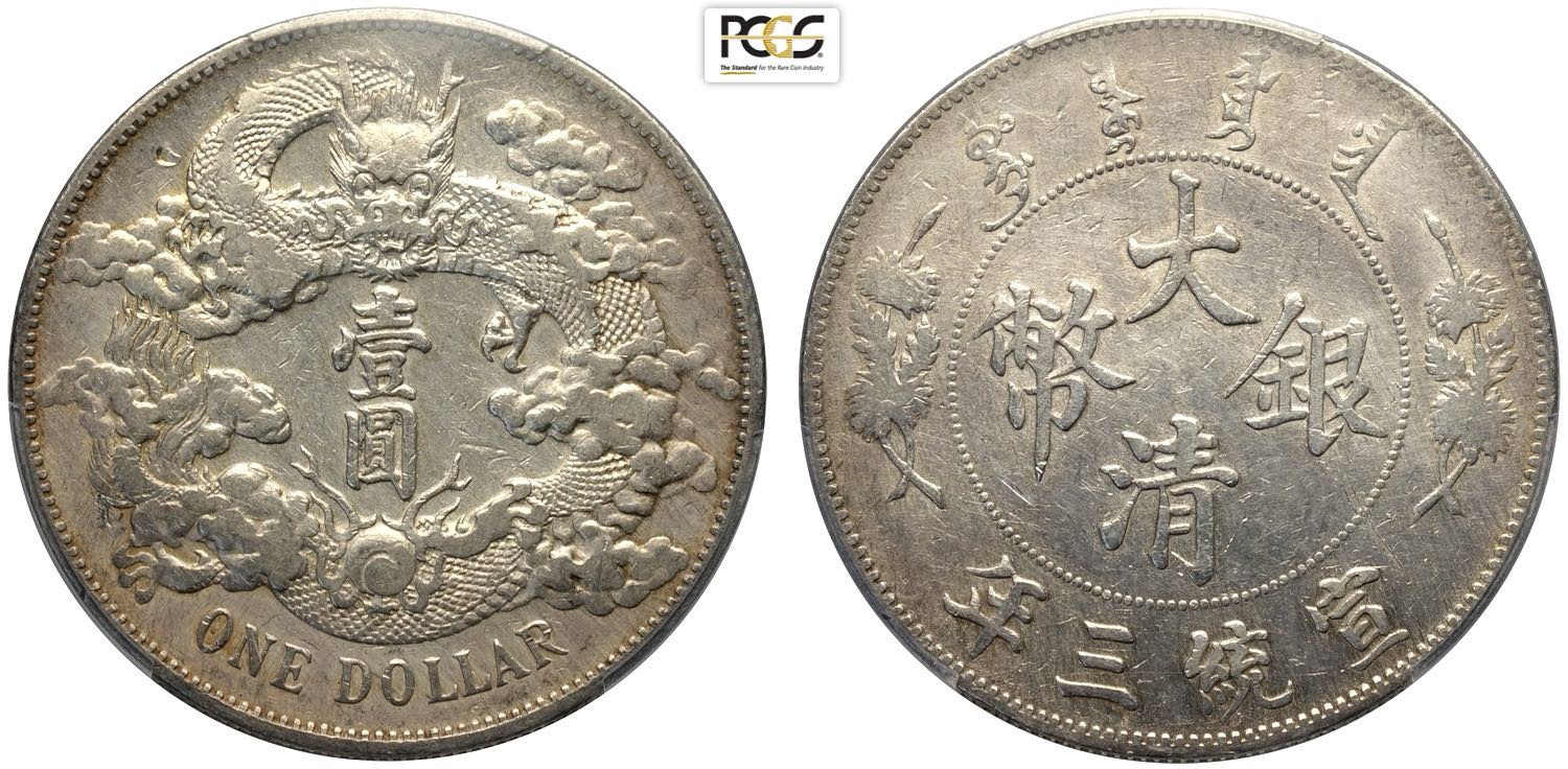 China Empire, Hsuan-t'ung (1909-1911), Dollar year 3 (1911), L&M-36 with dot after "DOLLAR" variety, Rare Ag 39 mm, 26,90 g, in Slab PCGS ...