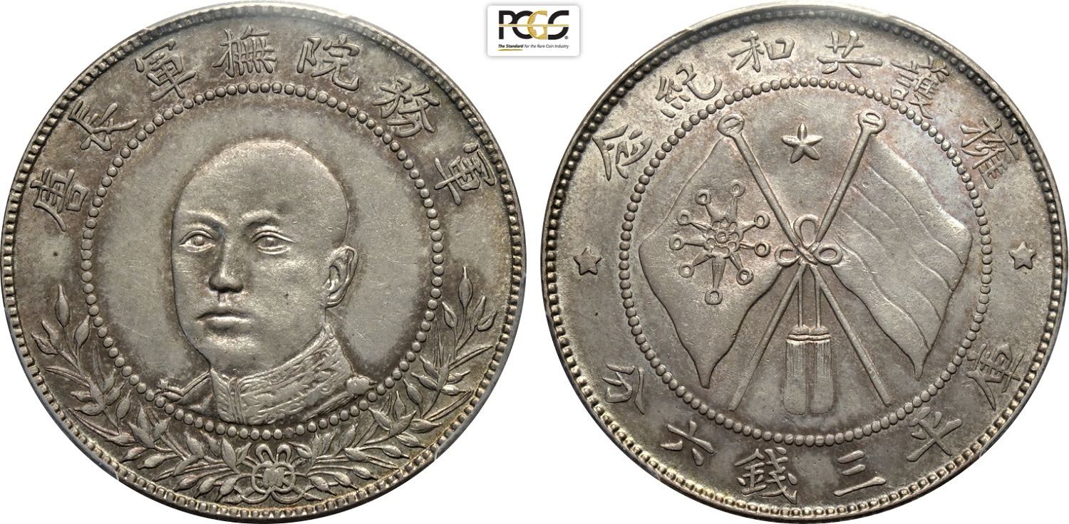 China, Republic (1912-1949), Dollar year 10 (1921), L&M-79 NC, Ag 39 mm 26,40 g, in Slab PCGS AU58