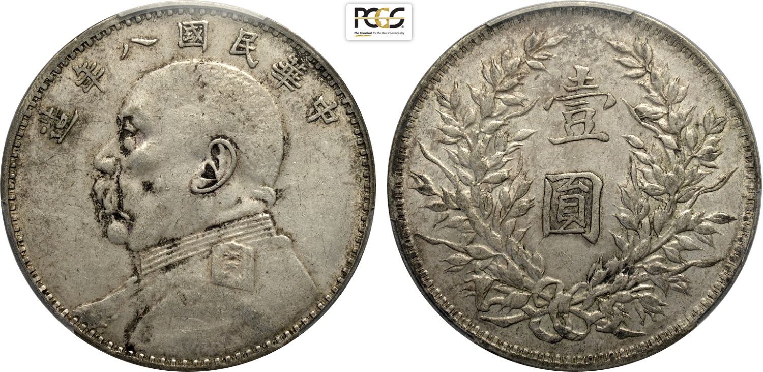 China, Republic (1912-1949), Dollar year 8 (1919), Rare L&M-76 Ag 39 mm 26,40 g, in Slab NGC AU50