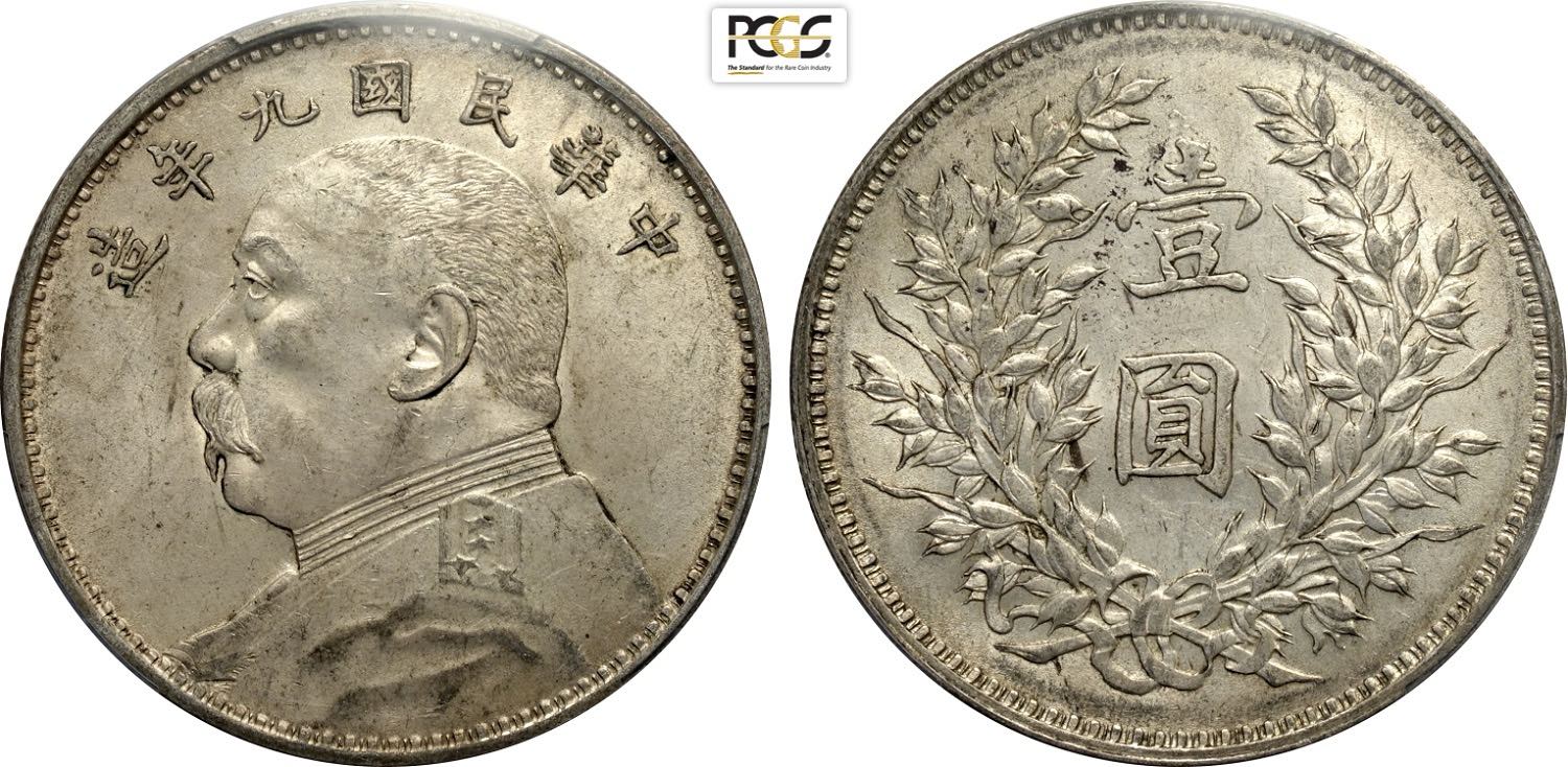 China, Republic (1912-1949), Dollar year 9 (1920), L&M-77 Ag 39 mm 26,40 g, in Slab NGC AU58