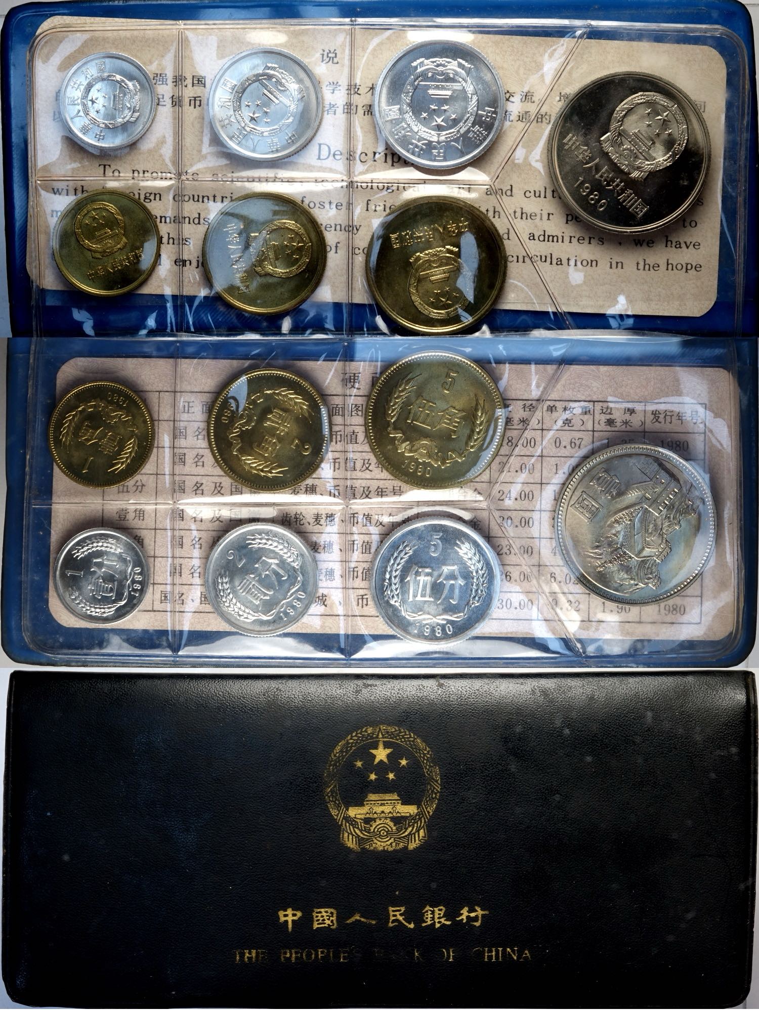 China, People's Republic (1949-), Mint Set 1980 (7), KM-MS2 Sealed in original black vinyl mint folder with certificate