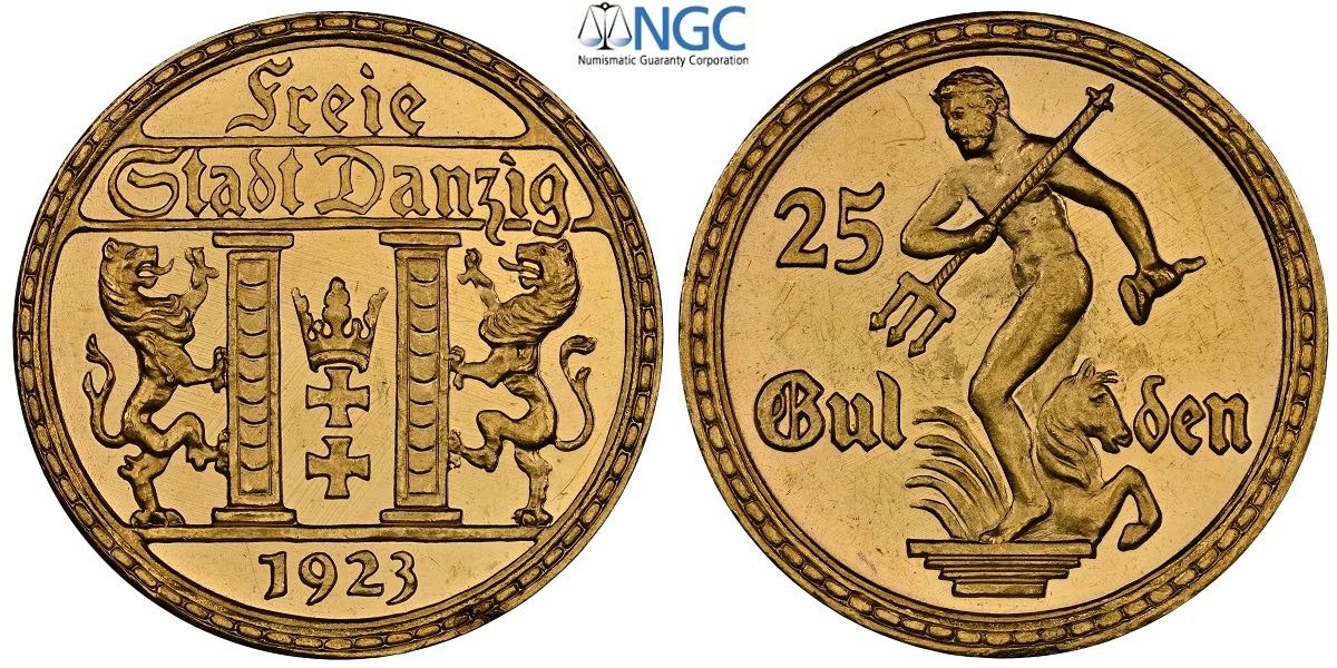Danzig, Free City (1920-1939), 25 Gulden 1923, RR Au 22 mm 7,99 g, in Slab NGC PF62