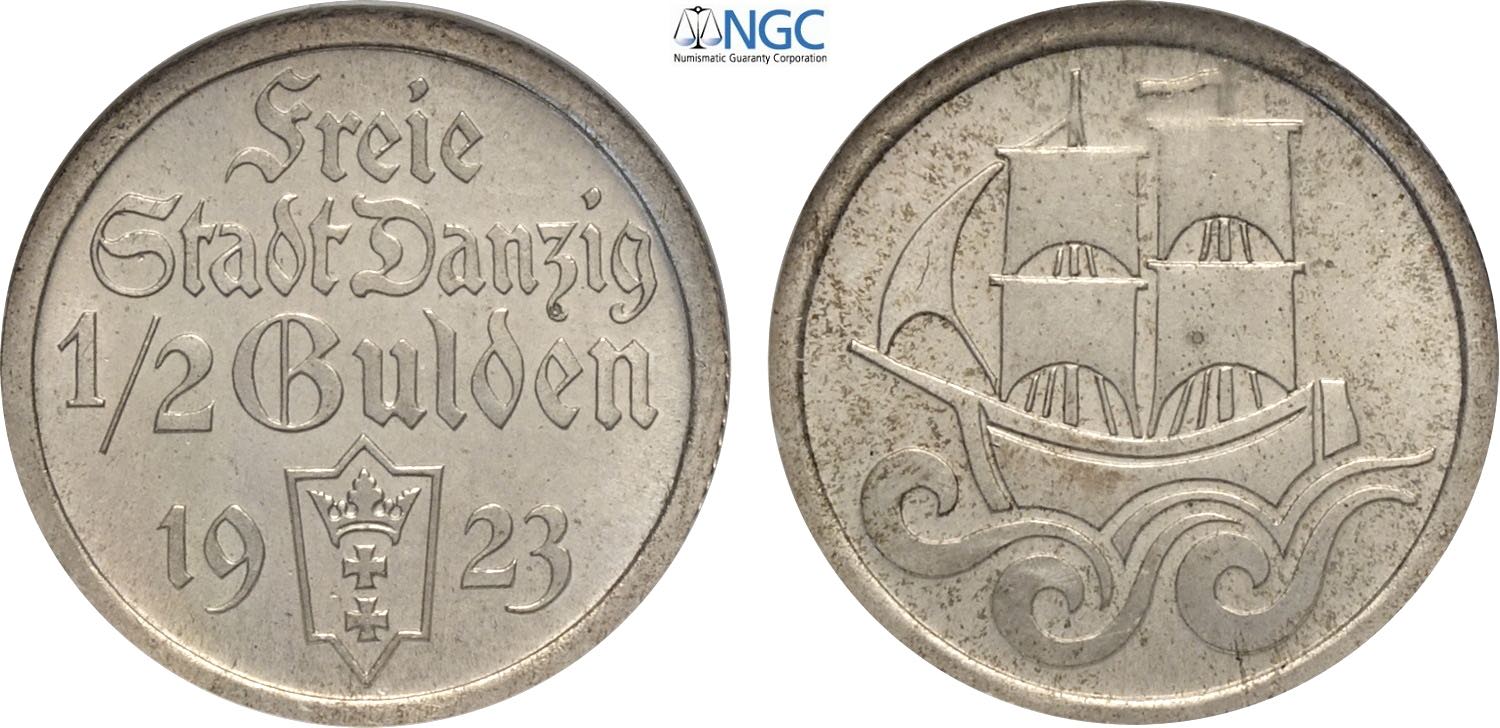 Danzig, Free City (1920-1939), Proof 1/2 Gulden 1923, Ag 20 mm 2,5 g, in Slab NGC PF64