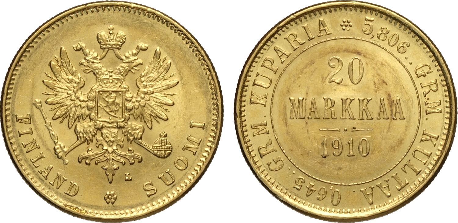Finland, Nicholas II (1894-1917), 20 Markkaa 1910, Helsinki Mint, Au 21,3 mm, SPL