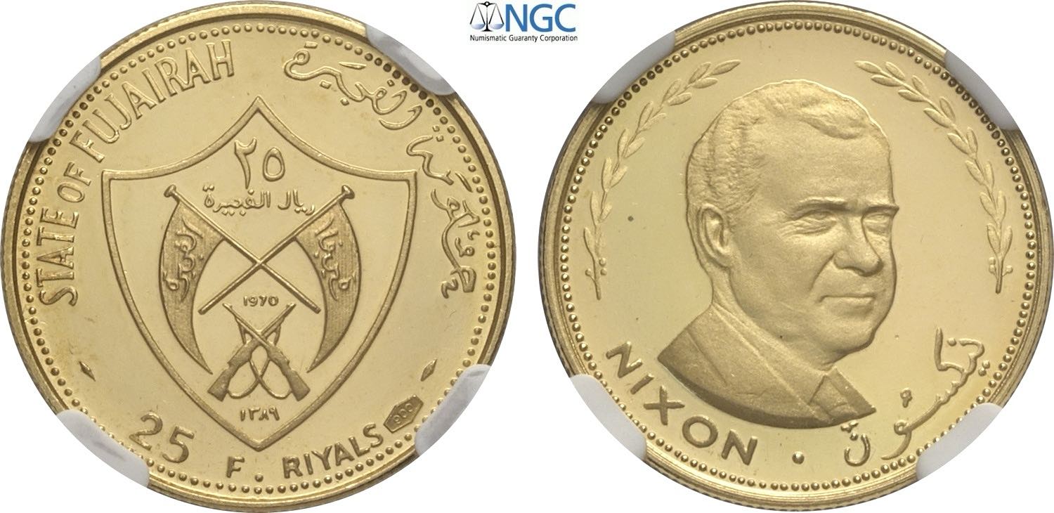 Fujairah, Muhammad bin Hamad al-Sharqi (1952-1974), 25 Riyals 1970, KM-7 Au 20 mm 5,18 g, in Slab NGC PF69 Ultra Cameo