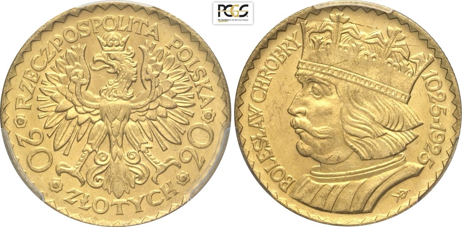 Poland, Second Republic (1918-1939), 20 Zlotych 1925, Warsaw mint, Au 21 mm 6,45 g, in Slab PCGS MS64 (i graffi visibili in foto sono sulla ...