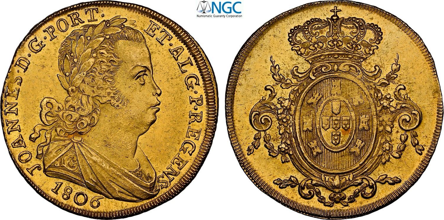 Portugal, Joao VI (1799-1826), Peca of 6400 Reis 1806, Lisbon Mint, Au 31,5 mm 14,34 g, in Slab NGC MS63