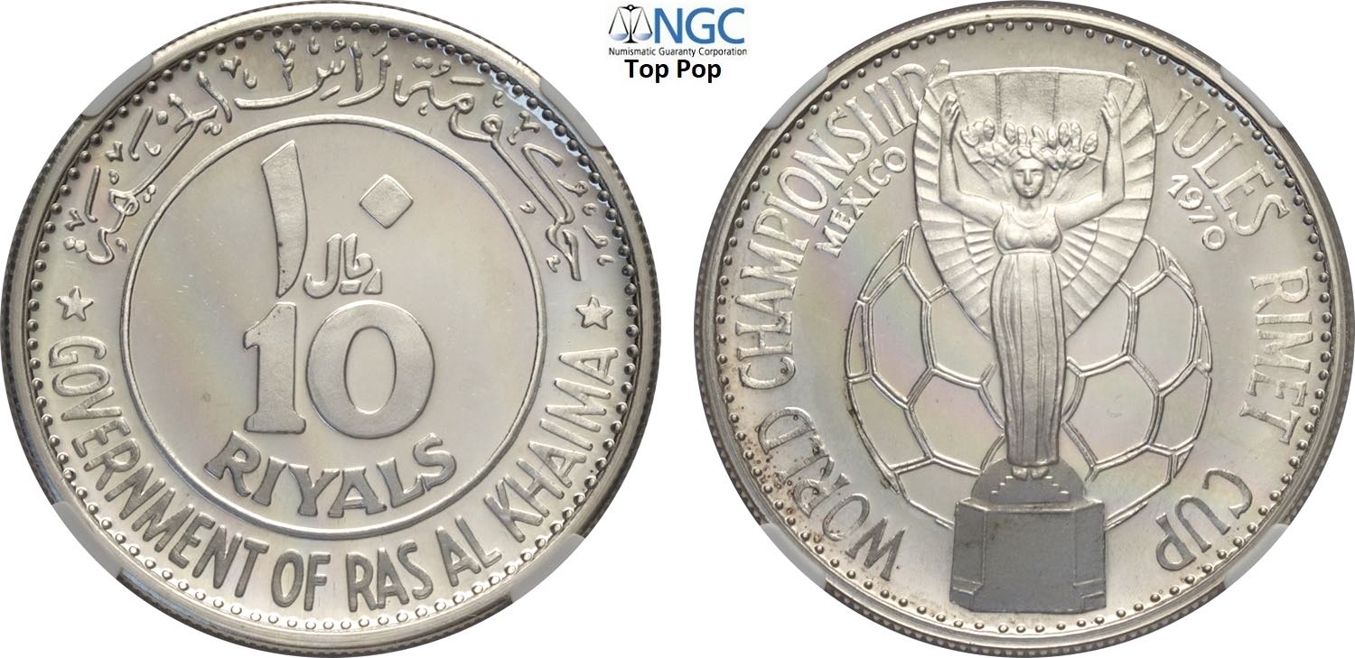 Ras Al-Khaimah, Saqr Bin Muhammad al-Qasimi (1948-), 10 Riyals 1970, KM-6 Ag 40 mm 29,95 g, in Slab NGC PF69 Ultra Cameo Top Pop! (Cert. ...