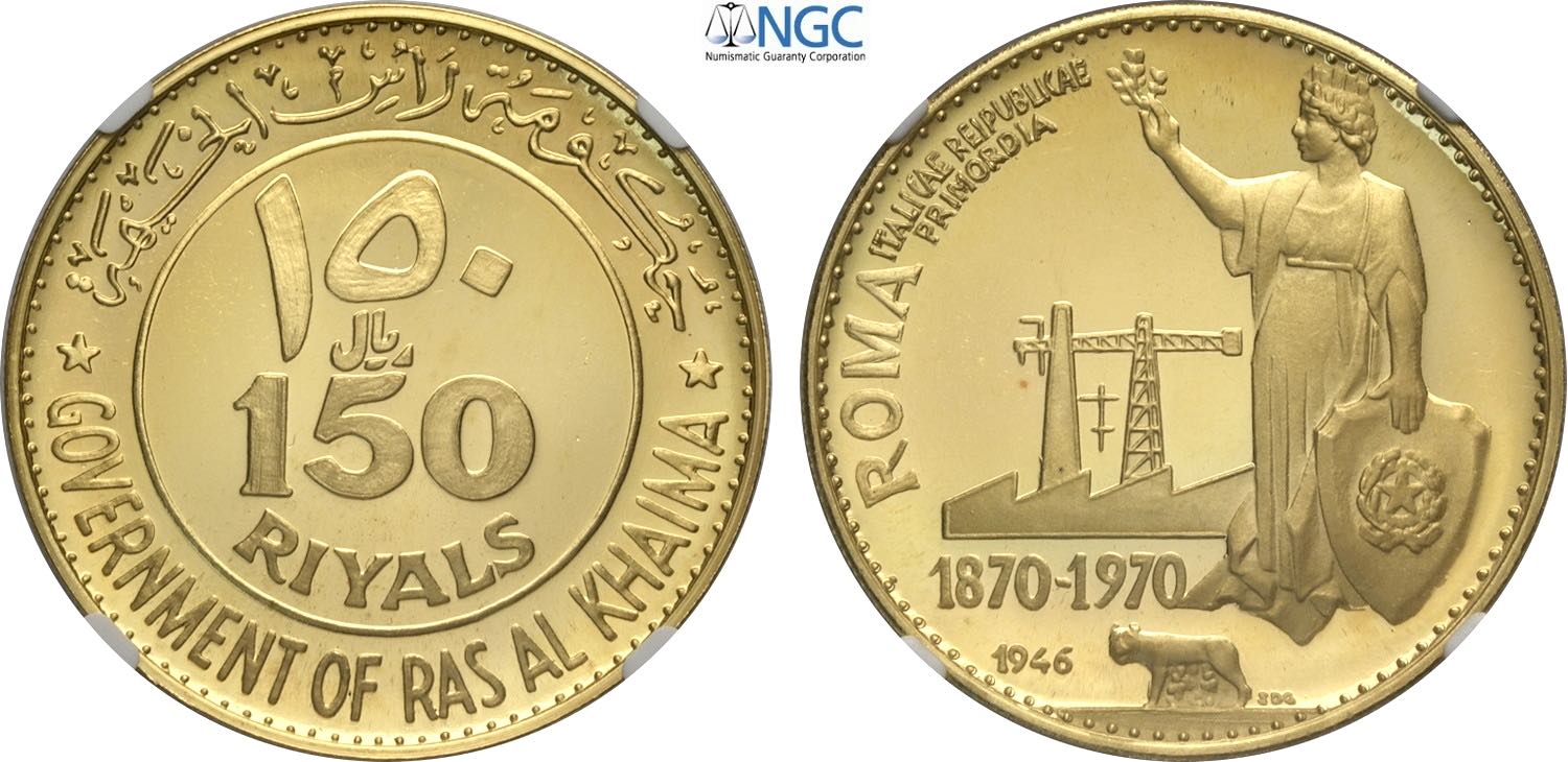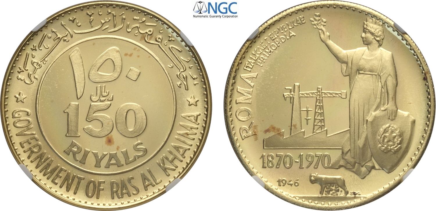 Ras Al-Khaimah, Saqr Bin Muhammad al-Qasimi (1948-), 150 Riyals 1970, KM-24 Au 34 mm 31,05 g, in Slab NGC PF67 Ultra Cameo