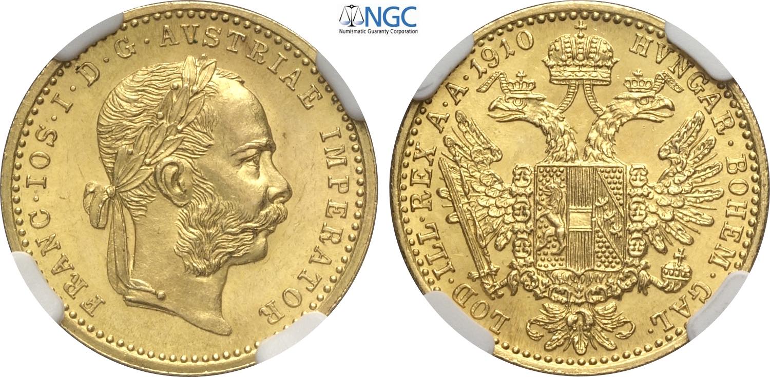 Austria, Franz Joseph I (1848-1916), Ducat 1910, Wien mint, Au 20 mm, 3,49 g, in Slab NGC MS64