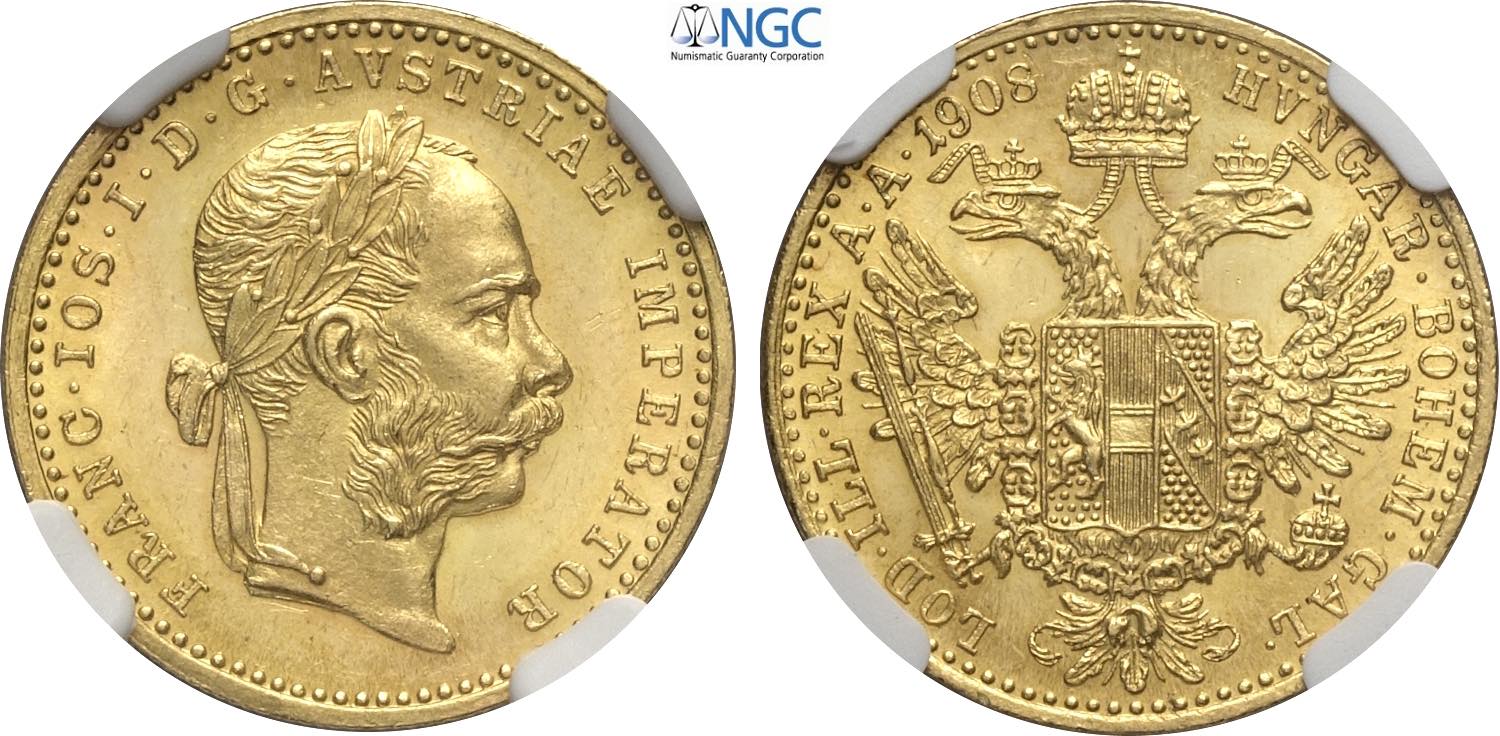 Austria, Franz Joseph I (1848-1916), Ducat 1908, Wien mint, Au 20 mm, 3,49 g, in Slab NGC MS64