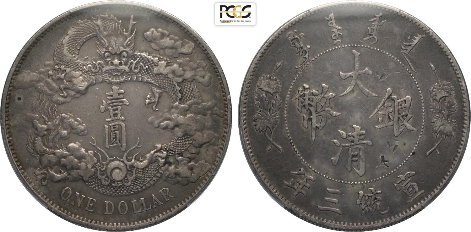 China Empire, Hsuan-t'ung (1909-1911), Dollar year 3 (1911), Tientsin mint, L&M-37 extra flame, Ag 39 mm, 26,9 g, in Slab PCGS XF-chop mark