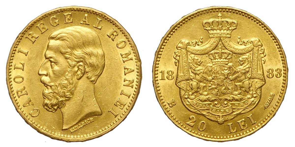 Romania, Carol I, 20 Lei 1883, Au mm 21 SPL-FDC