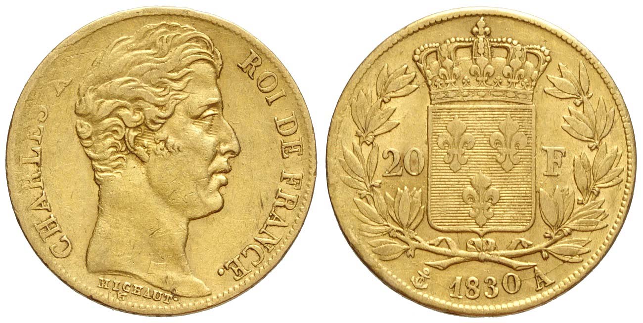 France, Charles X, 20 Francs 1830 A, Au mm ...
