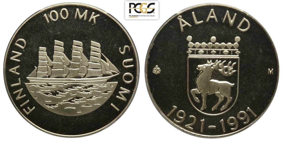 Finland, Republic, 100 Markkaa 1991-PM Proof, KM-70 Ag mm 35 in Slab PCGS PL66