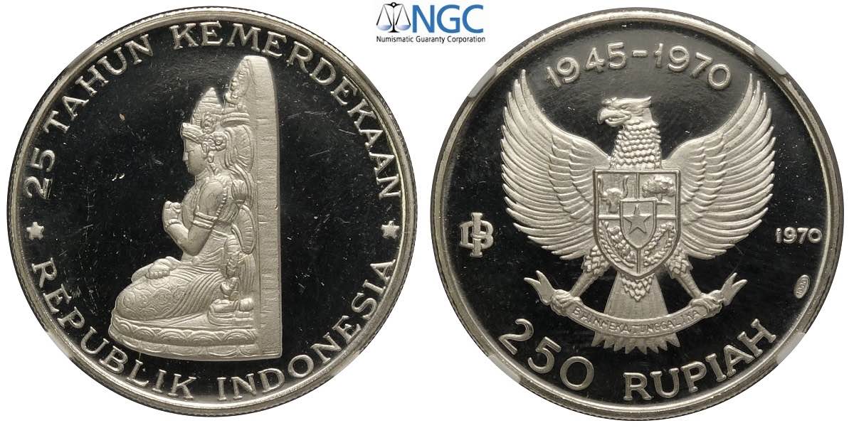 Indonesia, Republic, 250 Rupiah 1970, Ag mm 30 in Slab NGC PF68 Ultra Cameo