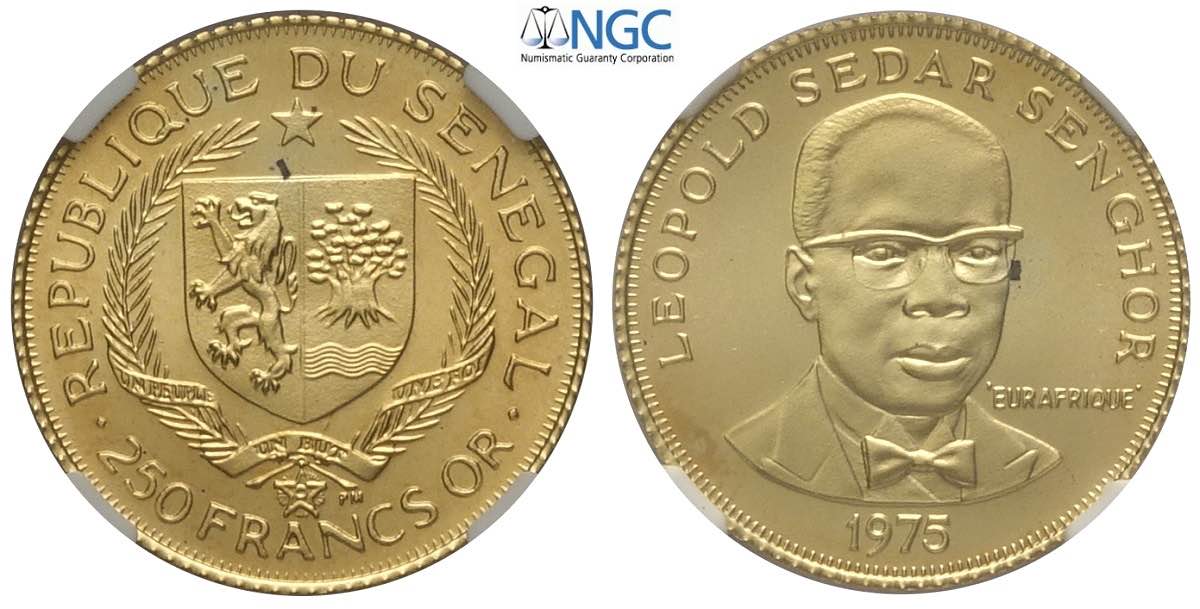 Senegal, Republic, 250 Francs 1975 (Half Pound), Au mm 19 in slab NGC MS68
