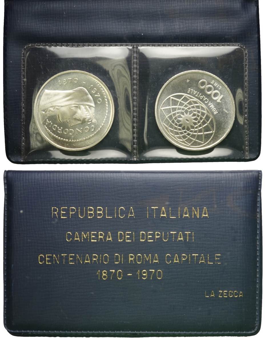 Repubblica Italiana, Monetazione in Lire, 1000 Lire 1970 Prova, in confezione originale insieme all'esemplare per la circolazione, Rara Ag mm 31,4 FDC