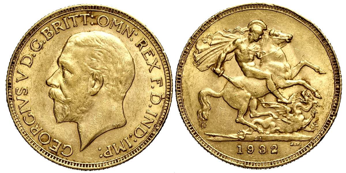 South Africa, George V, Sovereign 1932-SA, Au mm 22 SPL