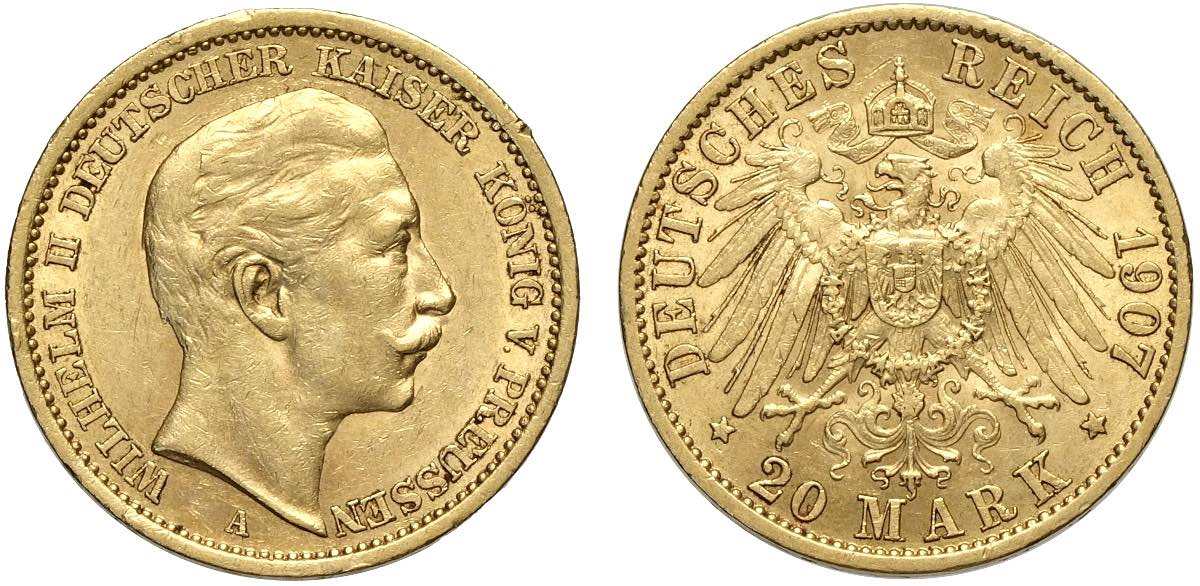 Germany Prussia, Wilhelm II, 20 Mark 1907-A, Au g 7,97 BB-SPL