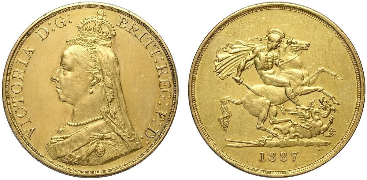 Great Britain, Victoria, 5 Pounds 1887, Au g 39,94 moneta pulita altrimenti SPL