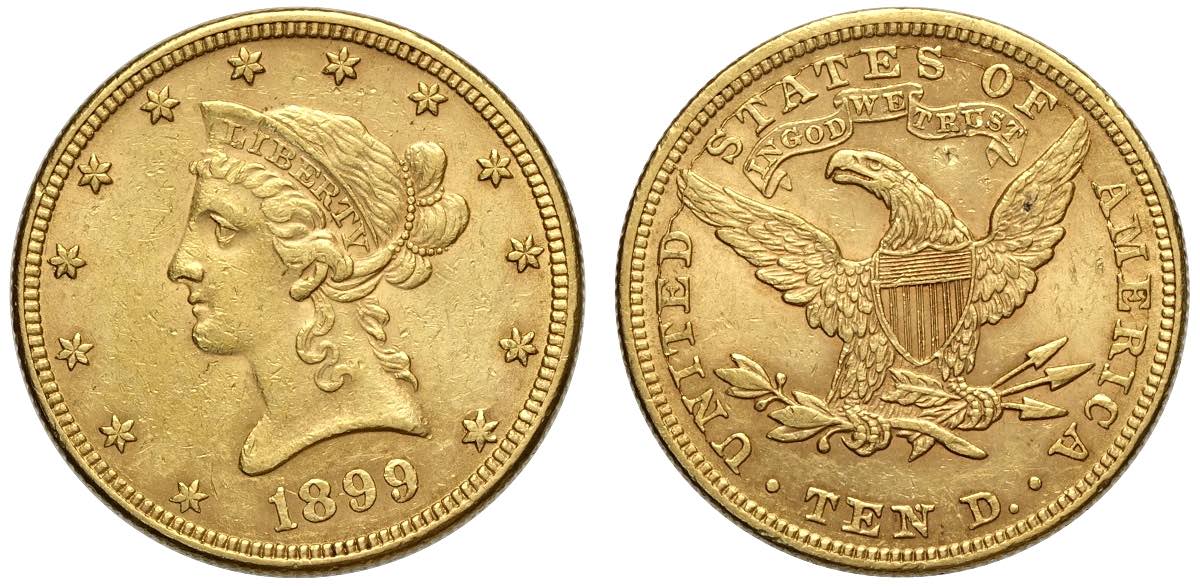 United States of America, 10 Dollars 1899, Au g 16,72 q.SPL