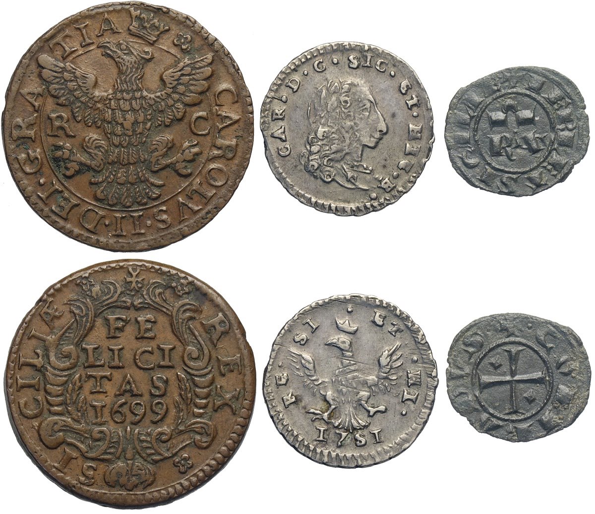 Lotto 63 - Palermo e Messina, Lotto di 3 monete: Grano 1699 (SPL), ...
