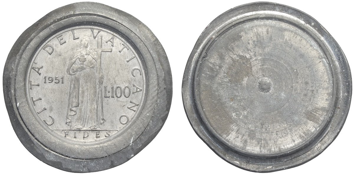 Città del Vaticano, Pio XII (1939-1958), Prova di conio del rovescio del 100 Lire 1951, Pb mm 40 g 23,72 FDC